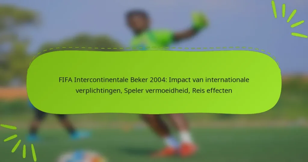 De FIFA Intercontinentale Beker 2004 benadrukte de aanzienlijke impact van internationale verplichtingen op de prestaties van spelers, terwijl atleten de uitdagingen van reizen, vermoeidheid en planningsconflicten navigeerden. Deze factoren beïnvloedden niet alleen hun fysieke capaciteiten, maar ook hun mentale scherpte, wat uiteindelijk de uitkomsten van cruciale wedstrijden beïnvloedde. De lange afstanden en tijdzoneveranderingen verergerden deze problemen, waardoor herstel en gereedheid een kritieke zorg werden voor de deelnemende teams. Key sections in the article: Toggle Wat is de impact van internationale…