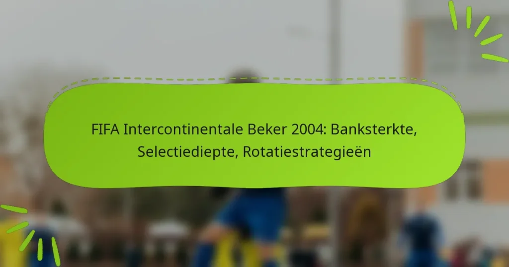 De FIFA Intercontinentale Beker 2004 benadrukte het belang van de sterkte van de bank en de diepte van de selectie voor het behalen van succes. Teams met kwalitatief sterke vervangers waren beter in staat om zich aan te passen aan de eisen van het toernooi, waardoor ze effectief omgingen met spelersmoeheid en blessures. Coaches pasten rotatiestrategieën toe om hoge prestatieniveaus te behouden, zodat hun selecties gedurende de competitie competitief bleven. Key sections in the article: Toggle Wat is de sterkte…