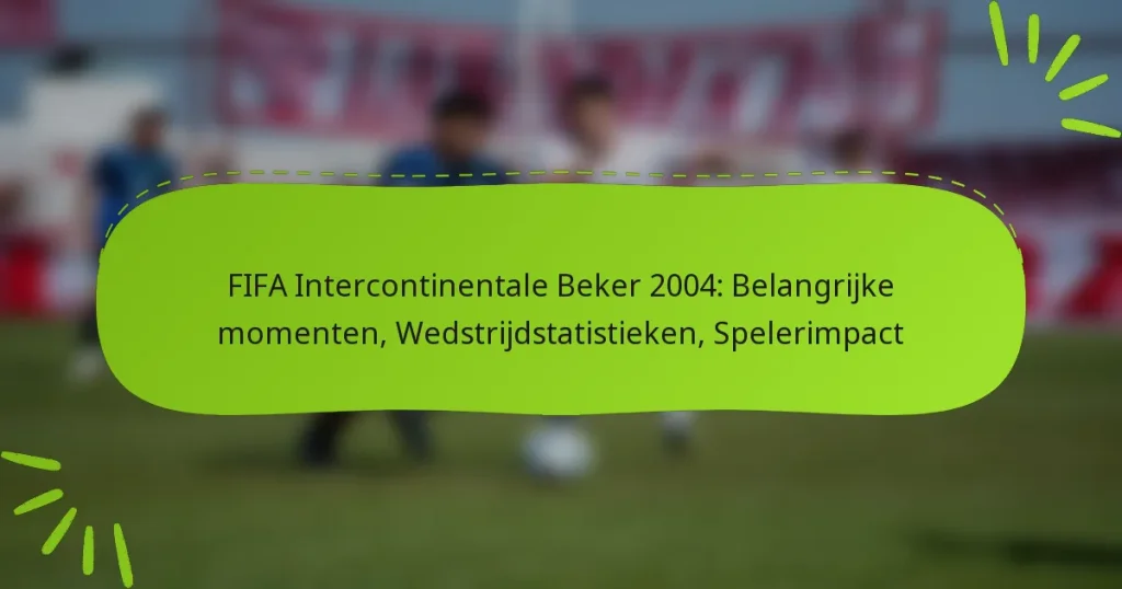 De FIFA Intercontinentale Beker 2004 benadrukte een rijke verscheidenheid aan teamstrategieën, waarbij offensieve en defensieve tactieken werden gecombineerd die cruciaal waren voor de uitkomst van elke wedstrijd. Coaches implementeerden specifieke formaties en maakten aanpassingen in real-time, terwijl spelers gedefinieerde rollen uitvoerden die de dynamiek van de wedstrijden aanzienlijk beïnvloedden. Dit toernooi toonde niet alleen individuele briljantheid, maar benadrukte ook het belang van teamwork en aanpassingsvermogen in situaties met hoge inzet. Key sections in the article: Toggle Wat waren de teamstrategieën…
