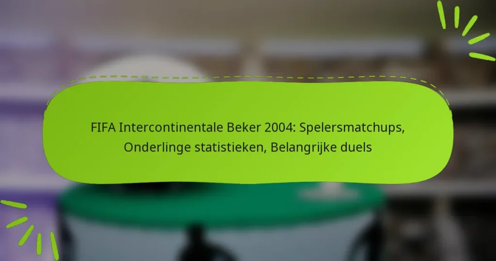 De FIFA Intercontinentale Beker 2004 werd gekenmerkt door cruciale spelersduels die een belangrijke rol speelden bij het bepalen van de uitkomst van de wedstrijd. Deze confrontatie tussen de kampioenen van Europa en Zuid-Amerika benadrukte hun competitieve geschiedenis en bevatte belangrijke duels die individueel talent toonden en tegelijkertijd tactische strategieën beïnvloedden. Statistieken van onderlinge confrontaties gaven inzicht in hun prestaties, waarbij de dynamiek van hun winst-verliesrecords en algehele capaciteiten op het veld werd onthuld. Key sections in the article: Toggle Wat…