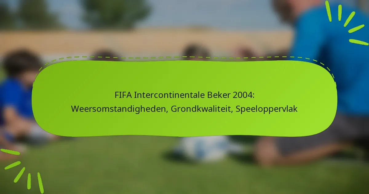 De FIFA Intercontinental Cup 2004 benadrukte de aanzienlijke impact van weersomstandigheden, veldkwaliteit en speeloppervlakte op de wedstrijdprestaties. Het begrijpen van deze factoren kan teams helpen zich beter voor te bereiden op toekomstige competities.